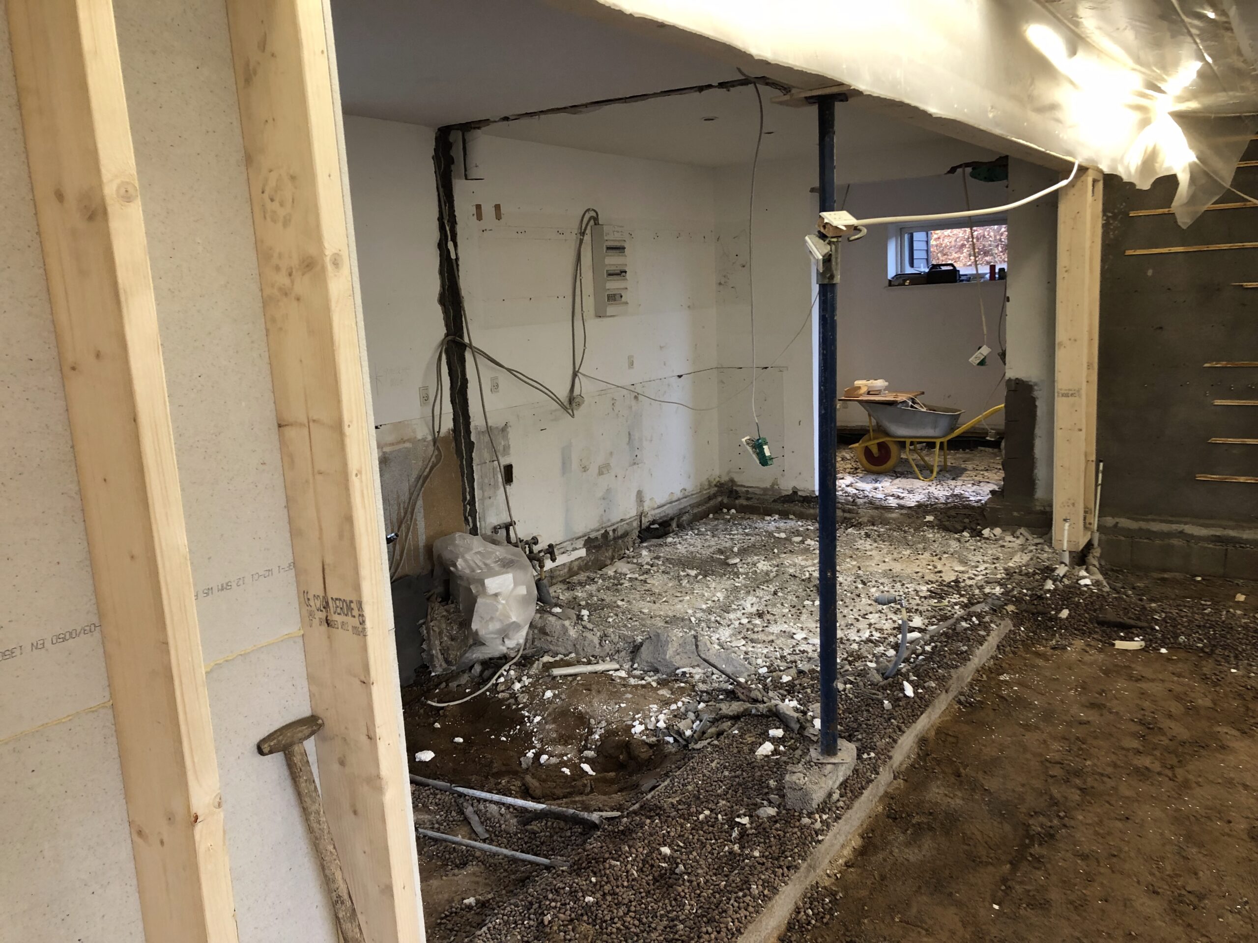 Efterfundering af villa i Aabenraa. Villaen har indvendige sætningsskader og skæve gulve.